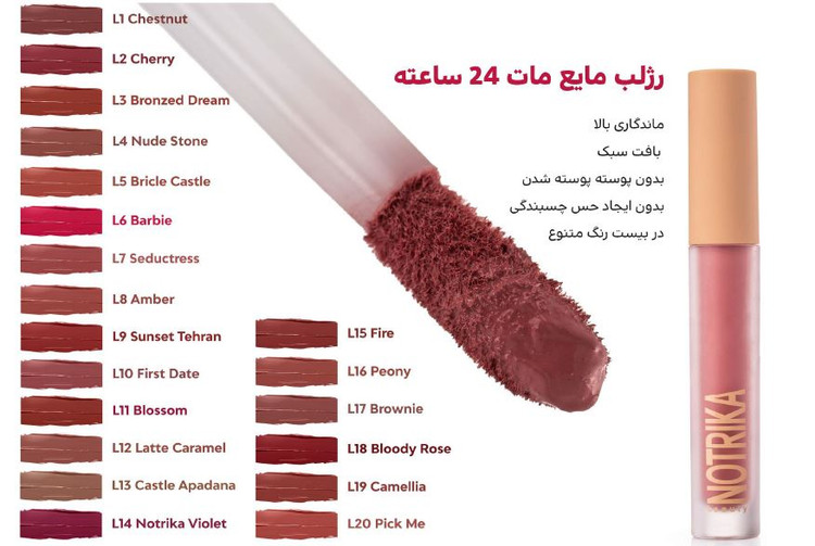 رژ لب مایع ۲۴ ساعته نوتریکا | ماندگاری واقعی، زیبایی بیوقفه