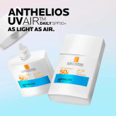ضدآفتاب لاروش پوزای آنتلیوس UV Air SPF50+ یک فلوئید روزانه فوق العاده سبک و بیرنگ است که با فناوری پیشرفته UVAIR، محافظتی قدرتمند در برابر پرتوهای UVA، UVB و آلودگیهای محیطی فراهم میآورد. این محصول، با ترکیباتی چون هیالورونیک اسید و نیاسینامید، پوست را بهطور همزمان آبرسانی، متعادل و محافظت میکند، و خاصیت انتی اکسیدانی فوق العاده ای دارد، بدون ایجاد احساس چربی یا سنگینی مناسب برای انواع پوست بهویژه حساس و مستعد جوش بوده و قابل استفاده از زیر آرایش در تمام فصول سال می باشد.
