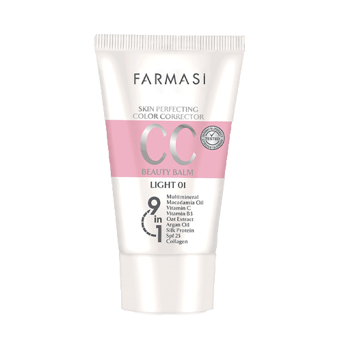 سی سی کرم فارماسی مدل Light یک کرم کنترل کننده رنگ پوست است که با پوشانندگی بالا و رطوبت رسانی خوب به پوست می تواند بعنوان کرم پودر و مرطوب کننده مورد استفاده قرار بگیرد. کرم آرایشی FARMASI در عین اینکه تمام نقاط صورت را بصورت کاملا یکنواخت پوشش می دهد، رنگ ناهموار آن را نیز متعادل می سازد. از جنبه های مراقبتی آن برای پوست می توان به مرطوب کنندگی بالا اشاره کرد که با آبرسانی عمیق پوست صورت، به خوبی از آن مراقبت می کند. همچنین به خاطر دارا بودن پوشانندگی بالا تمامی عیوب پوست صورت را به خوبی می پوشاند و مقاومت پوست را تا حد بالایی بهبود می بخشد. از ترکیبات آن می توان به مواد معدنی چندگانی یا مولتی مینرال، روغن ماکادمیا، روغن آرگان، ویتامین C، ویتامین B3، پروتیین سیلک، عصاره جو دوسر و کلاژن اشاره کرد. سی سی کرم شماره 01 فارماسی از spf25 برخوردار است که برای ضد آفتاب عدد مناسبی است. شماره این محصول 01 می باشد که تناژ روشن را پوشش می دهد.