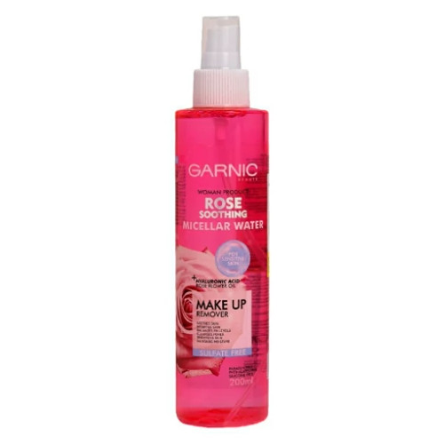 میسلار واتر تسکین دهنده گارنیک GARNIC با عصاره رز و هیالورونیک اسید مخصوص پوست حساس حجم 200 میلی لیتر